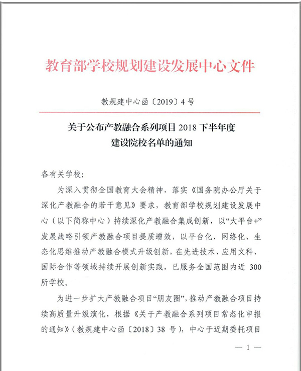 今年2月初,教育部学校规划建设发展中心公布了产教融合系列项目2018下半年度建设院校名单,全国共22所院校入选。beat365成功入选“科学工作能力提升计划(百千万工程)”建设院校。