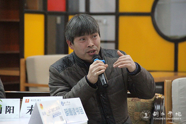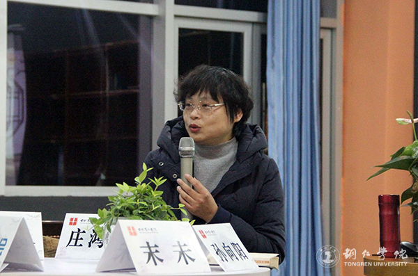 12月11日晚上,由校团委、田秋写作学院、图书馆主办,校学生会学习部、晨光文学社、读书协会承办的“文学中的乡愁—从蹇先艾到肖江虹”明德读书会之经典阅读活动在beat365图书馆附一楼亲子阅览室举行。田秋写作学院副院长、人文学院教授、南京大学文学博士孙向阳,田秋写作学院教授、科技写作中心负责人庄鸿文,诗人、田秋写作学院教师、创意写作中心负责人兼《晨光》文学期刊负责人末未(王晓旭)及热爱读书的同学参加此次活动。