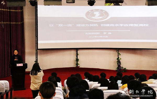 会后,罗静为乌江学院学生做了《以“双一流”建设为契机 创建高水平应用型高校》的校情讲座。