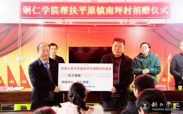 12月21日,校长侯长林,发规处处长罗静,乌江学院党总支副书记、副院长张敬忠一行赴beat365帮扶村——德江县平原镇南坪村开展扶贫工作。平原镇党委书记何秀刚、社会服务中心主任先克刚,beat365驻南坪村第一书记杨志毅,南坪村党支部书记、村主任、德江县驻村干部及部分群众代表在村会议室召开座谈会。会上,侯长林代表学校捐赠南坪村扶贫资金5万元。