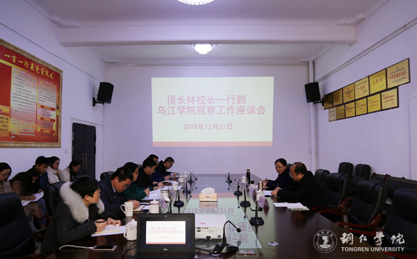 随后,侯长林一行赴乌江学院调研。调研座谈会在乌江学院三楼会议室举行。乌江学院党总支副书记、副院长张敬忠,分管学生工作负责人王红兵及相关教师参加了座谈。