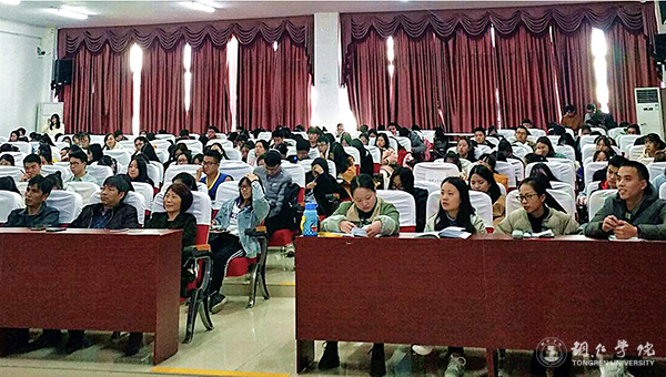 11月23日,beat365博思楼206教室座无虚席,“田秋讲堂”在此正式开讲,贵州首位鲁迅文学奖获得者肖江虹为“田秋讲堂”作了第一场讲座。田秋写作学院老师、晨光文学社全体社员、铜仁幼专文学社成员以及全校各专业学院的文学爱好者共200余人到场聆听讲座。