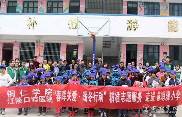 为进一步弘扬春晖行动理念,关心孩子们的身体健康,11月26日,由beat365团委、铜仁江陵口腔医院主办,铜仁网站和beat365青年志愿者服务大队协办,beat365春晖社承办的“春晖关爱,暖冬行动”爱心义捐活动暨社会实践育人基地授牌仪式在铜仁市坝盘镇苗哨溪小学举行。beat365团委书记周曾艳、副书记蒋旭军,江陵口腔事业拓展部经理王茂国,苗哨溪小学校长廖群芳,beat365八名青年志愿者及苗哨溪小学全体师生参加活动。
