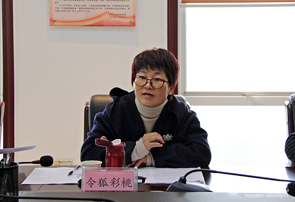 考核组组长、贵州大学党委副书记令狐彩桃讲话