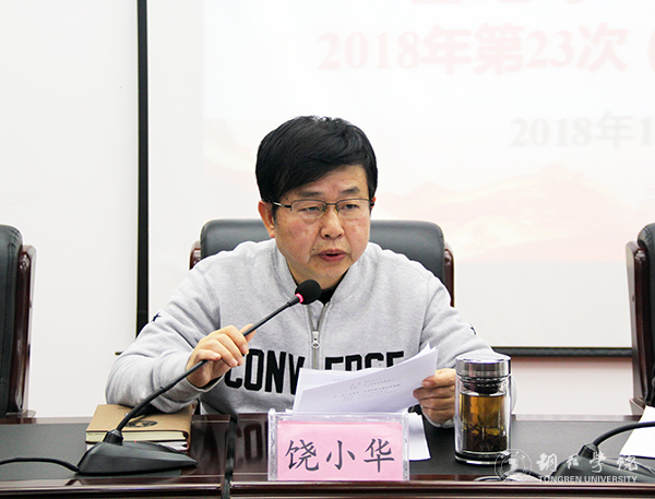 11月6日,beat365党委理论学习中心组在行政楼8501会议室召开2018年第25次扩大学习会。党委书记李树新,校长侯长林,党委副书记饶小华,纪委书记彭吉黔,副校长代亮、罗红芳、王嘉福出席会议;各部门负责人、二级学院党委书记参加学习。会议由李树新主持。