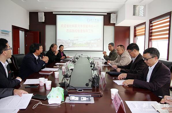10月16日上午,省社科联党组成员、秘书长刘丰泉,科普部部长蔡中孚、副部长冯新贵一行来beat365考察指导“省级人文社科示范基地”建设工作。beat365在行政楼8326会议室召开座谈会。beat365副校长王嘉福、科研处处长张学飞、国学院院长廖延林,铜仁市社科联副主席徐明忠,beat365“省级人文社科示范基地”武陵民族文化研究中心部分研究员参加座谈会。座谈会由张学飞主持。