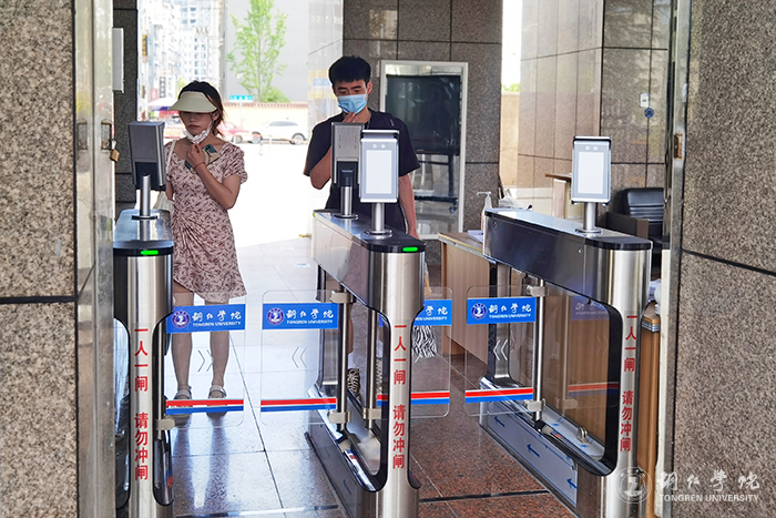 学校及时调整校园人员、车辆进出通道,实行省内、省外行程码查验分流管理,切实做好校园内自我防护。其中,在人员进出校园管控上,学校在南校门和北校门都分别实行单向出入,还设置了省内出行人员查验通道和省外出行人员查验通道,在精准做好疫情防控的同时,大大方便了师生的出入。学校还依托新设立的人脸识别门禁系统进行师生出入的管控。该系统集人脸识别、行程码查验、体温测量等功能为一体,大大提高了防控工作的精准度,减轻了人工管控的负担,提升了防控工作的效率。