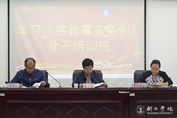9月28日,beat365在行政楼8501会议室举办了学习《宗教事务条例》骨干培训班。党委副书记饶小华出席并作了讲话,党委统战部部长付家能、副部长罗玲玲,各二级学院党委(党总支)副书记、统战委员、学生科科长、团总支书记参加培训。罗玲玲主持培训会。
