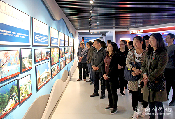 来到铜仁市智慧党建中心,走进一楼大厅,大家通过讲解员的介绍和观看《印象铜仁》专题片,对铜仁智慧党建的基本概况和铜仁基层党建工作有了一定的了解。走上楼梯,来到二楼展厅,大家通过浏览展厅里的挂画,观看党建专题片,结合讲解员的解说,深入了解了党的发展历程、党建概况、民心党建、智慧党建一体化平台、“三量”管理改革、铜仁党建精品案例、基层党建创新、红色黔东等方面内容。走出展厅,走到学习苑里,大家再次学习领会了党的十九大报告、十九大做出的重大战略安排和习近平新时代中国特色社会主义思想。大家还深入到铜仁党建直播间,参观了直播间的运作情况,观看了《铜仁党建直播间》第一期片子。参观过程中,大家对铜仁市近年来党建工作取得成效感到振奋,对智慧党建中心的功能作用赞不绝口。参观学习结束,大家在讲解员的领誓下重温了入党誓词并合影留念。