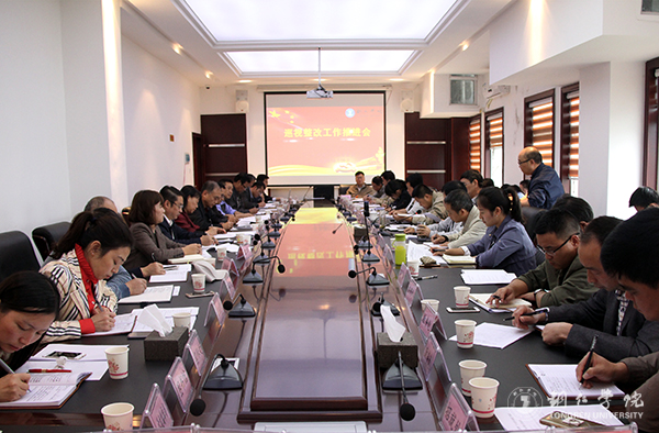 10月9日下午,beat365在行政楼8520会议室召开巡视整改工作推进会,党委书记李树新、副书记饶小华,纪委书记彭吉黔,副校长罗红芳,各二级学院党委(党总支)书记,各职能部门负责人参加会议。会议由饶小华主持。