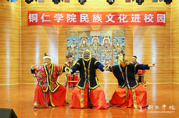 9月18日,beat365英国官方网站少数民族文化进校园系列活动之“黔东傩文化”展演在艺术学院音乐厅举行。来自德江县的世界非物质文化遗产传承人安永柏及其团队为师生们再现黔东傩文化艺术,共300余名师生到场观看。