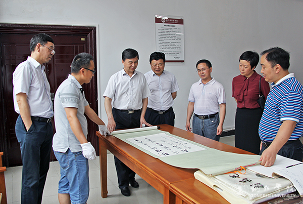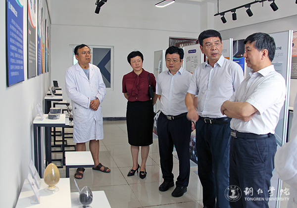 在实验实训中心,教务处副处长冉茂武介绍了实验实训中心的整体情况;材化学院相关负责人介绍了学校科研团队实施电解锰渣资源化综合利用项目,解决铜仁市锰矿资源生产开发产生的电解锰渣资源化处理,加快资源化利用的工业化进程取得的成效。在图书馆,馆长梁正海介绍了图书馆的规模、馆藏情况,带领大家参观了馆藏室,向大家展示了图书馆里的“镇馆之宝”。在梵净山人文生态馆,国学院院长廖延林介绍了梵净山人文生态馆的整体布局、功能作用以及管内的各类藏品和蕴含其中的黔东地域文化。