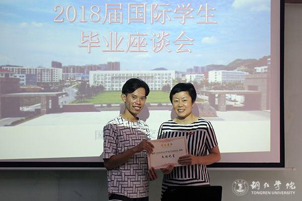 会上,罗红芳对5位留学生圆满完成学业、顺利毕业表示祝贺。她说,我们的留学生在校期间一直表现很好,五年的留学生涯,是大家人生成长过程中的重要经历,虽然在成长的过程中偶尔会犯一些错误,但重要的是大家都能知错能改,不断成长进步。她指出,毕业生走向社会,仍然有许许多多需要学习的地方,美好的人生是需要靠努力奋斗来实现的,希望大家珍惜青春、把握未来,学会感恩、懂得奉献,做一个有目标、不懈努力、善良的人。她表示,因为大家的到来,给学校增添了魅力与活力,beat365英国官方网站是一个“有温度”的大家庭,虽然大家毕业了,即将离开母校、离开中国,但学校一直会牵挂着大家,欢迎大家能够经常回校看看,也欢迎大家带着家人、朋友来中国旅游。同时,希望大家把beat365英国官方网站的精神带回去,将大家在beat365英国官方网站的学习生活向身边的人分享,让更多的人了解中国,不断加深两国的友谊,促进共同发展。