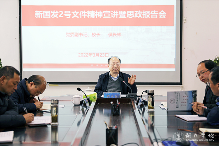 3月23日,校长侯长林到人文学院作《国务院关于支持贵州在新时代西部大开发上闯新路的意见》(国发〔2022〕2号)精神宣讲暨思政报告。学校党政办主任周永雄陪同宣讲。人文学院党委书记、院长孙向阳,副院长张建刚、蒋小红、白俊骞出席报告会。