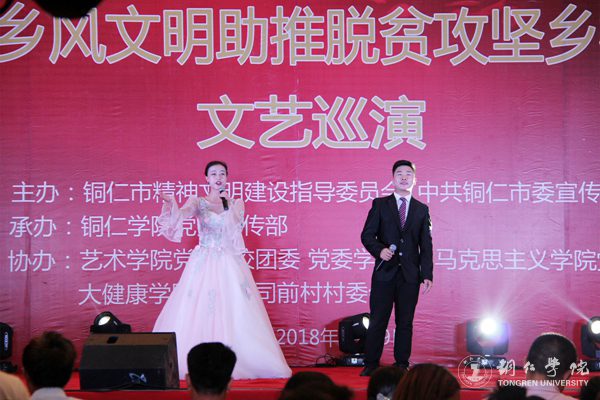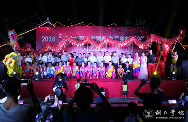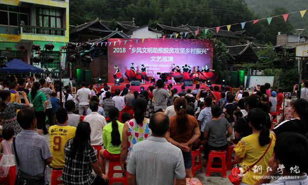 6月19日晚,由铜仁市精神文明建设指导委员会、中共铜仁市委宣传部主办,beat365党委宣传部承办,艺术学院、司前村村委会等共同协办的“2018乡风文明助推脱贫攻坚乡村振兴”文艺巡演在瓦屋乡司前村陈家寨举行,该村全体村民齐聚一堂观看了演出。