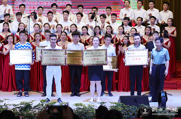 比赛结果当场揭晓,经管学院、艺术学院获得一等奖;农林学院、国际学院、材化学院获得二等奖;大数据学院、人文学院、教育学院、马克思主义学院、大健康学院获得三等奖。李树新、饶小华、罗红芳分别为获得一、二、三等奖的参赛队伍进行了颁奖。
