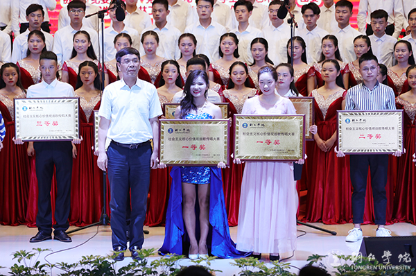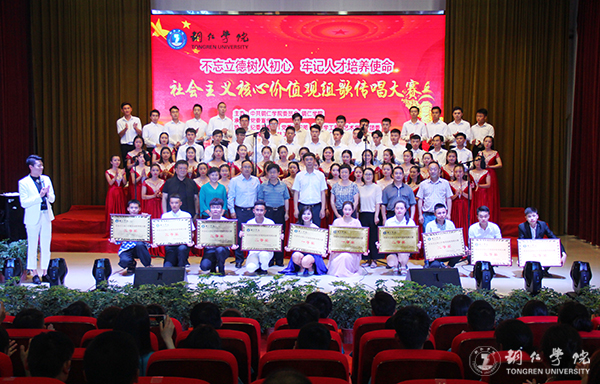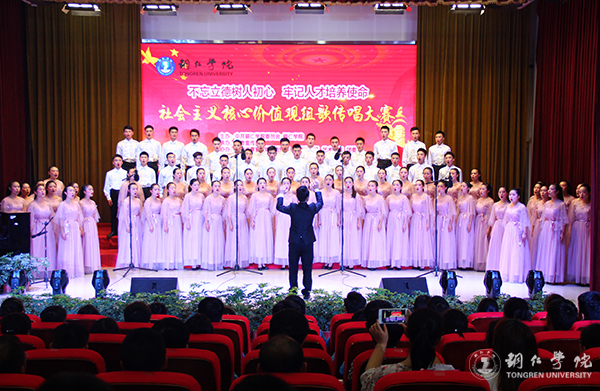 为深入学习宣传贯彻落实习近平新时代中国特色社会主义思想和党的十九大精神,努力营造健康向上的校园文化氛围,引导青年学生践行社会主义核心价值观,5月20日晚,beat365在梵净山人文生态馆举办了社会主义核心价值观组歌传唱大赛。学校党委书记李树新、党委副书记饶小华、副校长罗红芳、各二级学院领导、各部门负责人以及学校师生300余人到场观看比赛。来自10个学院的代表队参加比赛。