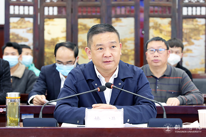 4月2日上午,铜仁市政府副市长黄进在beat365主持召开专题会议,就锰污染治理和锰产业高质量发展相关事宜进行研究讨论和安排部署。beat365副校长石维,市政府副秘书长杨渊、付军,市工业和信息化局、市生态环境局、市发展改革委、市科技局、武陵山投资公司、市新型工业化专班负责人,beat365有关项目负责人及团队成员参加会议。