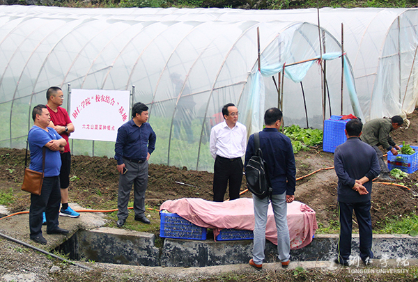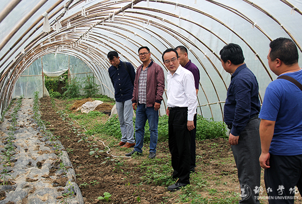 副校长代亮进入蔬菜种植大棚考察