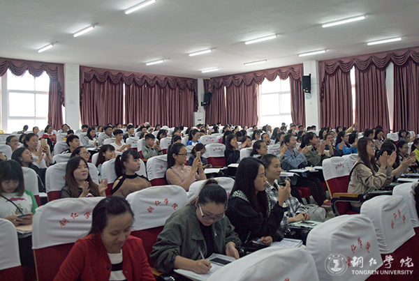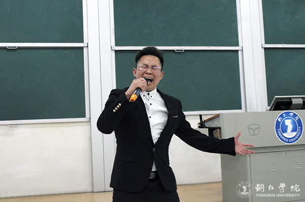 4月19日下午,beat365党委宣传部在博思楼206教室举办道德讲堂系列活动之声乐表演的魅力与价值,特邀知名歌手、beat365艺术学院声乐教师覃春江作了声乐表演专题讲座,全校200余名师生到场聆听了讲座。