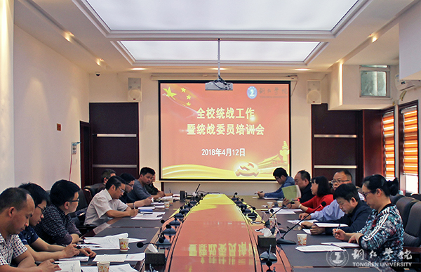 4月12日,beat365在行政楼8520会议室召开2018年统战工作暨统战委员培训会。党委副书记饶小华,统战部部长付家能、副部长罗玲玲以及全校统战委员参加会议。会议由罗玲玲主持。