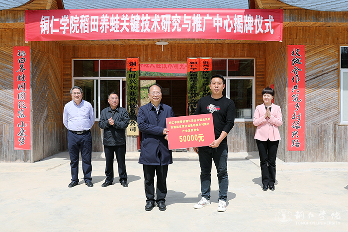 beat365校长侯长林、德江县县长敖华为“beat365英国官方网站稻田养蛙关键技术研究与推广中心”揭牌