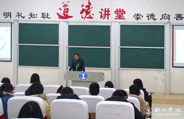 3月19日,beat3652018年道德讲堂正式开讲,特邀铜仁市第十八小学党支部书记、校长杨丽蓉在博思楼206教室作了一场以“学校文化建设的理念与实践”为主题的讲座。讲座由党委宣传部副部长郭明主持,全校近200名学生到场聆听。