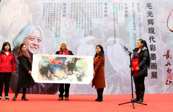 开幕式上,吉首大学领导、湘西自治州政协副主席龙春生、湖南省凤凰县政法委书记姚文凯先后作了致辞;铜仁市文联主席龙显峰宣布开幕;毛光辉作了答谢词并向贵州傩文化博物馆捐赠画作。