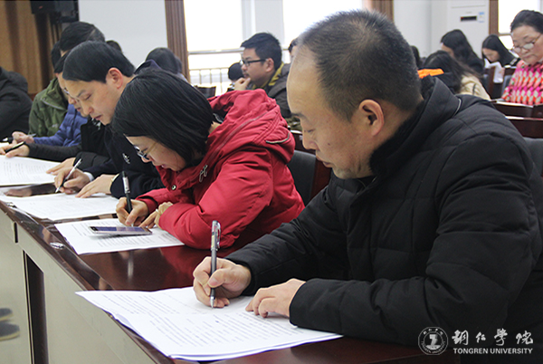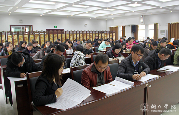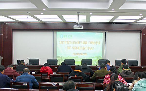 本次考试根据铜宣发[2017]82号《关于组织2017年度全市在职干部职工理论考试的通知》要求,以学院、部门为单位组织集中考试。在行政楼上班的工作人员,统一在8501会议室参加考试。