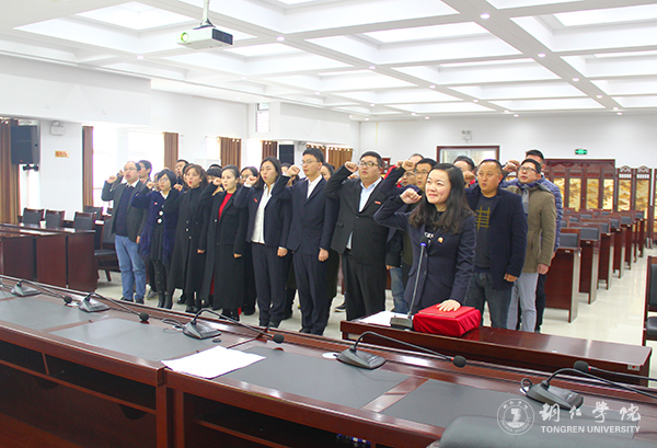 “我宣誓:忠于中华人民共和国宪法,维护宪法权威,履行法定职责,忠于祖国、忠于人民,恪尽职守、廉洁奉公,接受人民监督,为建设富强、民主、文明、和谐的社会主义国家努力奋斗!”12月4日是第四个国家宪法日,当日早上,阵阵宣誓声从beat365行政楼8501会议室中传出。beat365自2017年3月后提拔的40余名干部在领誓人、校党委组织部副部长徐秋云的带领下,集体宣誓迎国家宪法日,表达其自觉维护宪法,弘扬宪法精神,追逐法治的梦想。向宪法宣誓活动由人事处处长杨成光主持。