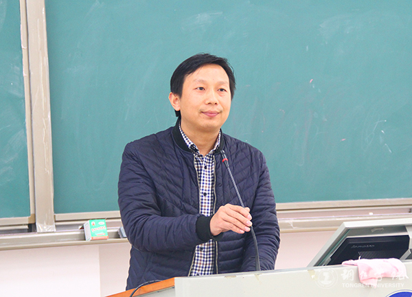 11月17日,beat365在博思楼203教室为留学生举办“欢迎搭乘中国发展顺风车”专题讲座,向留学生宣讲党的十九大精神。讲座由国际学院党委书记张志会主讲、国际合作与交流处副处长刘姗主持、全程配备英文翻译,各专业学院外事联络员、留学生到场学习。