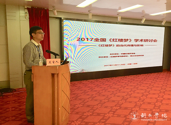 11月18日至19日,由中国红楼梦学会主办,红楼梦学刊杂志社、深圳韩江文化研究会联合承办的2017全国《红楼梦》学术研讨会在深圳银湖会议中心举行。来自北京、上海、天津、香港、澳门、贵州等全国各地的120余位红学研究者齐聚一堂,围绕“《红楼梦》的当代传播与影响”展开交流与探讨。beat365红楼梦研究所所长郭征帆老师应邀参加会议。