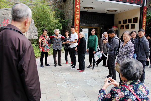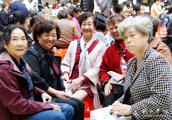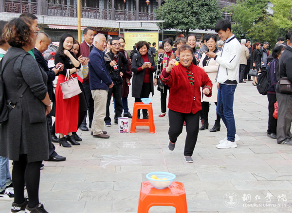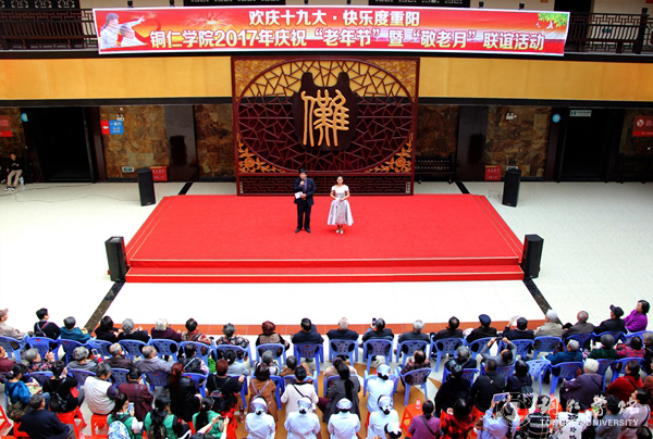活动在喜庆的氛围中拉开了序幕。张成勇代表学校对向全体退休老同志致以诚挚的问候和衷心的祝福。他说,在党的十九大胜利召开之际,中华民族伟大复兴的征程即将翻开新的一页,学校正站在新的历史起点上,正向着建设“双一流”的奋斗目标扬帆起航,感谢老同志们为学校的不断发展做出的贡献,希望老同志们身体健康、幸福美满。随后,艺术学院和大学生艺术团的师生们带来了精彩的文艺表演,其中,歌伴舞《当你老了》以优美动人的歌声和轻柔优雅的舞姿给老人们带来了视觉和听觉上的享受;艺术学院教师覃春江激情洋溢的为老同志们献唱了一首《心中渴望》,让老同志们为之动容,多次响起热烈的掌声。大健康学院护理学、社会工作专业师生开展了义诊和健康咨询服务,他们运用所学知识为老同志们测血压血糖,通过问卷调查表对老同志们进行了健康评估,并给出了科学的养生建议。