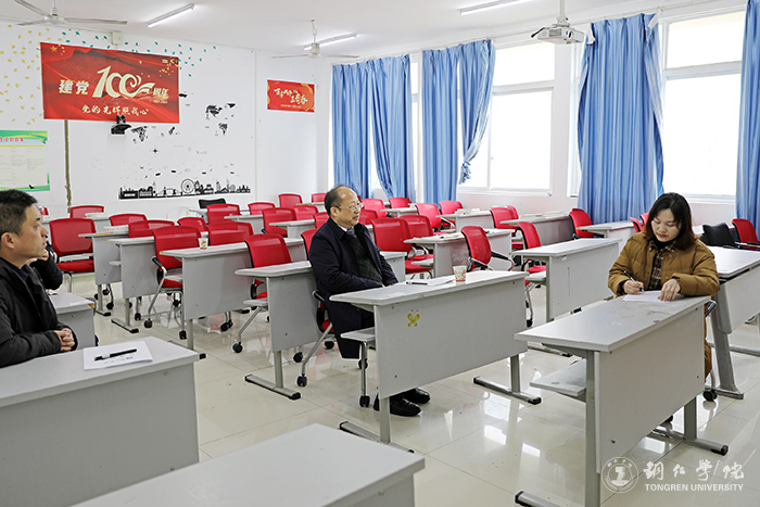 2月28日,beat3652022年春季学期开学第一天。早上8点,校长侯长林来到马克思主义学院,随机听取该院龙金菊老师为2020级思想政治教育专业班学生讲授《政治学》课程的课堂教学。学校党政办主任周永雄、马克思主义学院副院长张新昌陪同听课。