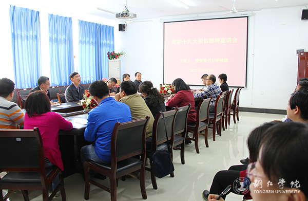 根据学校党委的统一安排部署,10月30日,党委书记李树新深入马克思主义学院,为该院全体教师宣讲党的十九大精神。宣讲会在该院会议室举行。党委宣传部部长叶丹陪同宣讲。