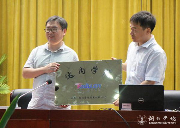 校企合作学生创新班学生代表舒松平分享了在达内“互联网+大数据”创新孵化基地学习的收获,并展示了部分学习作品。