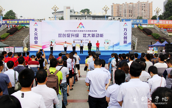 9月15日,全国大众创业万众创新活动周——铜仁市活动周启动仪式在锦江广场举行。市政府党组副书记、副市长、铜仁高新区党工委书记张明出席仪式并宣布活动周启动。beat365学工部部长张钱及一百余名学生代表参加了仪式。