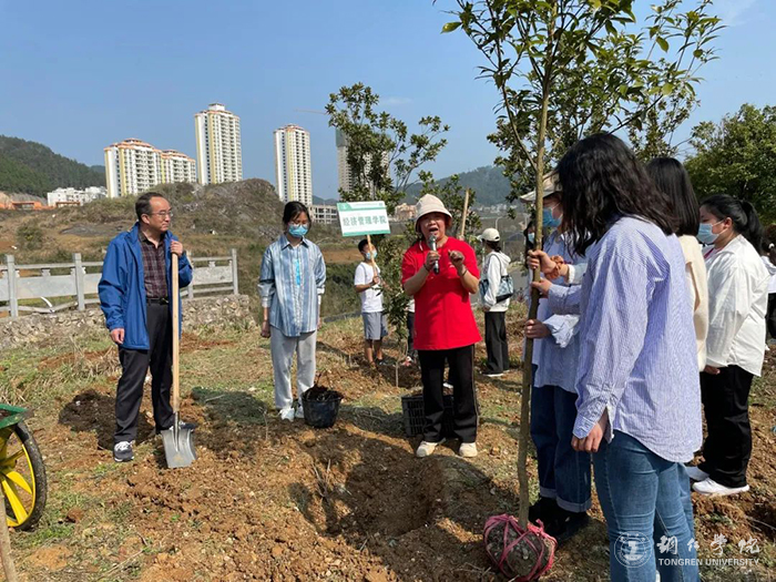 学生代表冉奕芳说,作为一名铜院人,要积极行动起来,为学校种棵树、为花草浇点水、为校园添点绿,争做绿化宣传员、环保小卫士,努力为大地注入生命的活力,为蓝天增添生动的色彩,为我们的校园筑起一道坚固的绿色长城。