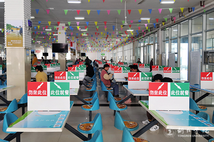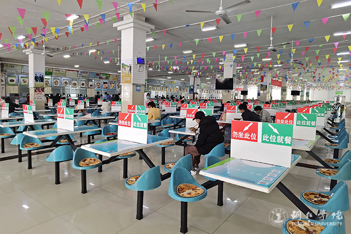 食堂里实行隔位就坐用餐