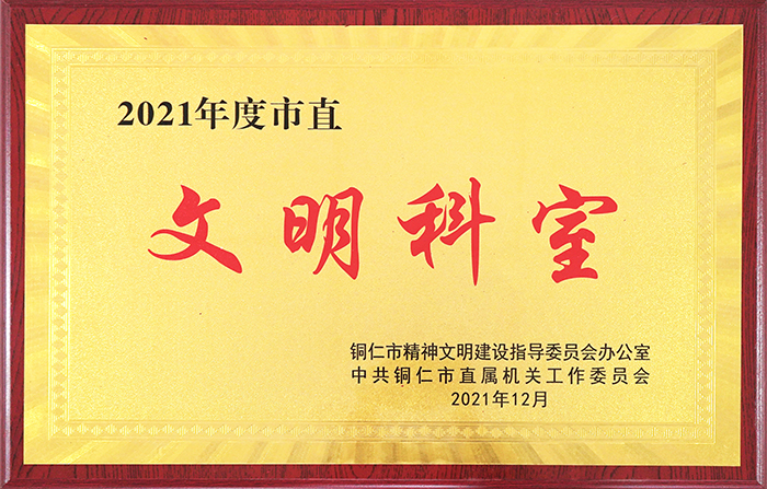 “市直文明科室”奖牌