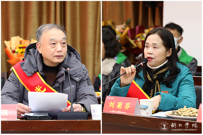 退休教职工所属学院、部门负责人代表、年轻教职工代表发言