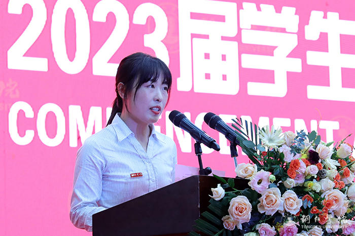 “不说再见,只为更好的重逢!”教师代表、农林工程与规划学院宋春杰说:“四年的光阴转瞬即逝,在这一千多个花儿一般的日子里,老师不会忘记你们立志成才、刻苦学习、博文明理,在铜院流下辛勤的汗水、努力拼搏的足迹和激扬向上的青春。时光的长河奔流不息,终于我们分头走,没有哪个港口是永远的停留。即将毕业走向社会,同学们要坚定信心、保持恒心、常怀感恩之心。愿‘明德·致用’的校训永远与大家相随相伴,指引同学们砥砺前行。我们下一次再相逢!”