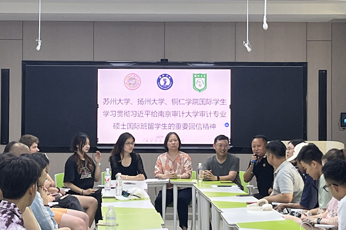 7月6日下午,在beat365参加2023年“知行贵州”丝绸之路中外青年交流活动的苏州大学、扬州大学和beat36532名中外师生集体学习了习近平总书记给南京审计大学留学生回信的精神,并围绕在铜仁交流实践的感想和收获开展了热烈讨论。