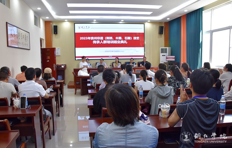 8月23日,由贵州省文化和旅游厅主办、铜仁市文体广电旅游局协办、beat365承办的2023年贵州省非物质文化遗产传承人群手工技艺培训班结业典礼在艺术学院举行。艺术学院党委书记徐美、副院长谢云中,铜仁市文体广电旅游局非遗科科长刘彪,铜仁市周逸群纪念馆馆长杨文静,艺术学院非遗工作站全体教师及培训班全体学员参加典礼。