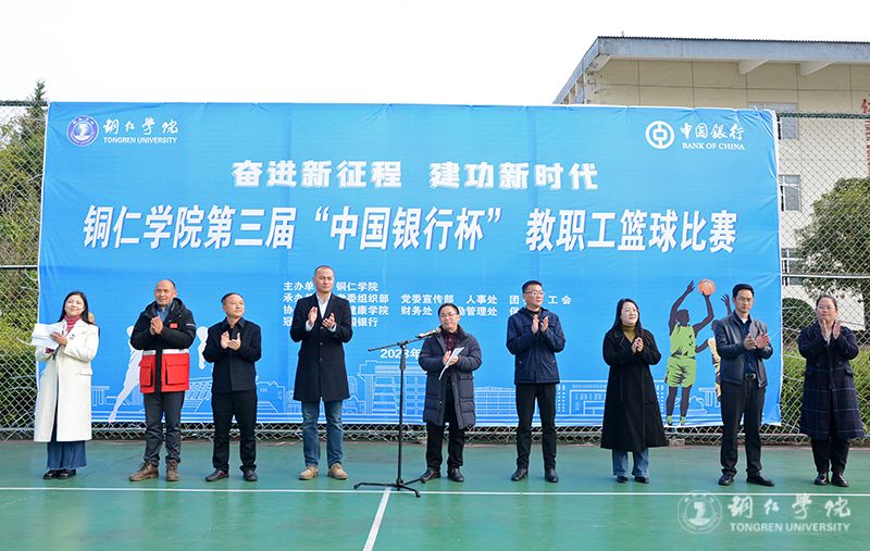 11月13日,由党委组织部、党委宣传部、人事处、团委、工会承办,大健康学院、财务处、后勤处、保卫处协办,中国银行冠名的第三届教职工篮球赛在篮球场开幕。党委委员、组织部部长梁正海、宣传部部长叶丹,中国银行铜仁分行副行长杨迪,人事处处长周曾艳,财务处处长蒲天银,大健康学院党委书记、院长余静,后勤处处长鲁道旺,以及全体参赛领队、教练员、运动员、裁判员和拉拉队参加开幕式。团委副书记田自立主持开幕式。