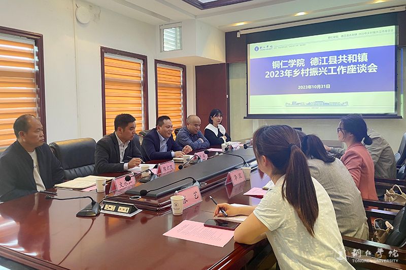 近日,铜仁市德江县共和镇党委委员许琪与beat365马克思主义学院博士、德江县共和镇茶坨村驻村干部袁记平等一行,在beat365举行2023年乡村振兴工作座谈交流。beat365党委组织部副部长徐秋云主持座谈会,马克思主义学院党委副书记李兢、发展规划处副处长袁红军等人参加座谈交流。
