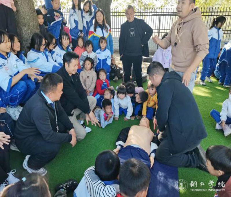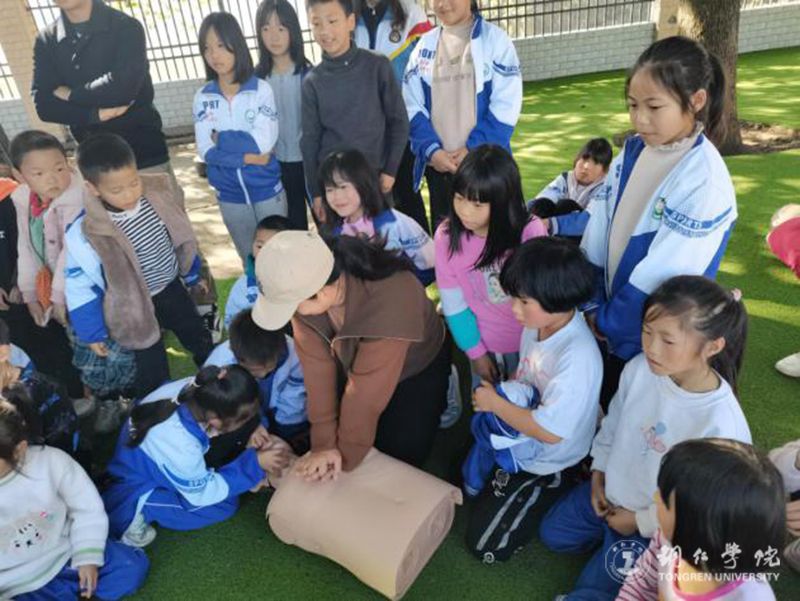在培训中,杨芬教授为四年级的同学们做了一场“海姆立克急救法”的课程教学,从同学们在吃饭堵塞咽喉等日常生活行为出发,以小学生们最感兴趣的实践问题进行边讲解边实践示范,引导同学们一边开心回答问题,一边就实际生活中遇到的问题进行提问。杨芬教授运用体育专业知识,结合“海姆立克”急救知识一一回答,并对每一为参加实践操作学生进行细心指导,让全班34名学生基本了解掌握“海姆立克急救法”技能。方新博士、周智红教授、张玉军教授为该校部分老师、8年级学生进行“心肺复苏”技能的培训。方新博士从发现病人、环境评估、自我保护措施、120拨打、旁人救援、对病人实施心肺复苏实际规范性操作、病人复苏心理安慰等进行讲解与演示,然后让部分老师、学生进行现场操作并指导,让在场老师及学生基本掌握了“心肺复苏”急救实践操作。