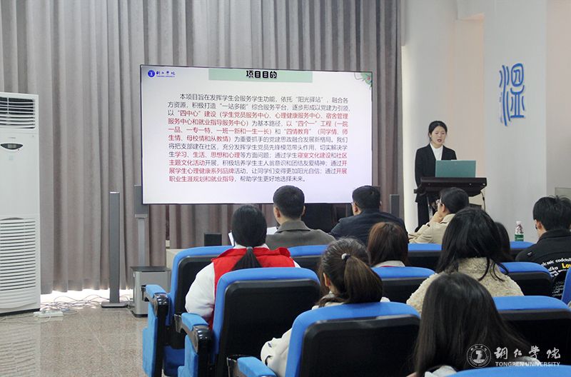 大赛以PPT汇报的形式进行,由各个项目负责人进行现场汇报和答辩。在公开答辩环节,参赛人员结合院系特征与同学实际困难,围绕服务目标、服务内容、项目创新点、服务成效、项目可持续性等多个方面进行汇报展示。答辩结束,评委老师针对项目的创新性、服务性、实践性展开提问,同时从如何扩大功能作用、项目的可行性、团队的专业性等方面提出有效的意见建议,指出要切实围绕学生会为同学服务工作,进一步提升服务成效的深度与广度。