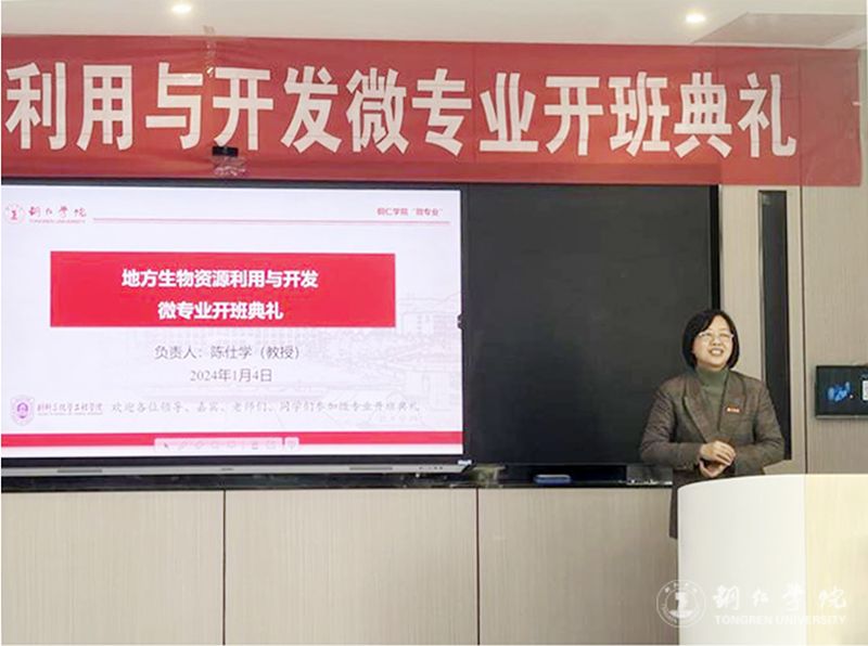 1月4日,beat365首届《地方生物资源利用与开发》微专业开班典礼在依仁楼B305智慧教室举行。副校长罗静,副校长、教务处处长龚静,教务处副处长冉耀宗,材料与化学工程学院党委副书记龙禹、江口县生物科技有限公司董事长姚琼等出席开班典礼。材化学院副院长陈仕学主持开班典礼。