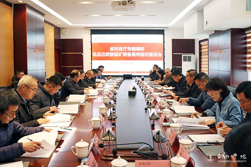 项长权一行首先到beat365产教融合中心、协同创新中心、重点实验室调研,并与科研人员交流科研工作以及成果转化等情况。随后,在beat365召开低品位碳酸锰矿制备高纯锰材座谈会,听取了beat365围绕“富矿精开”科技创新建设的情况汇报,了解了beat365现有科技创新平台情况、科研人才队伍情况以及在锰基新能源材料、锰系电子信息材料、绿色锰冶金及过程强化、锰渣资源化综合利用等重点研究领域的技术攻关情况。